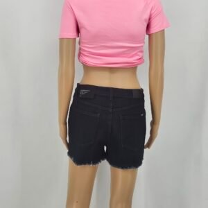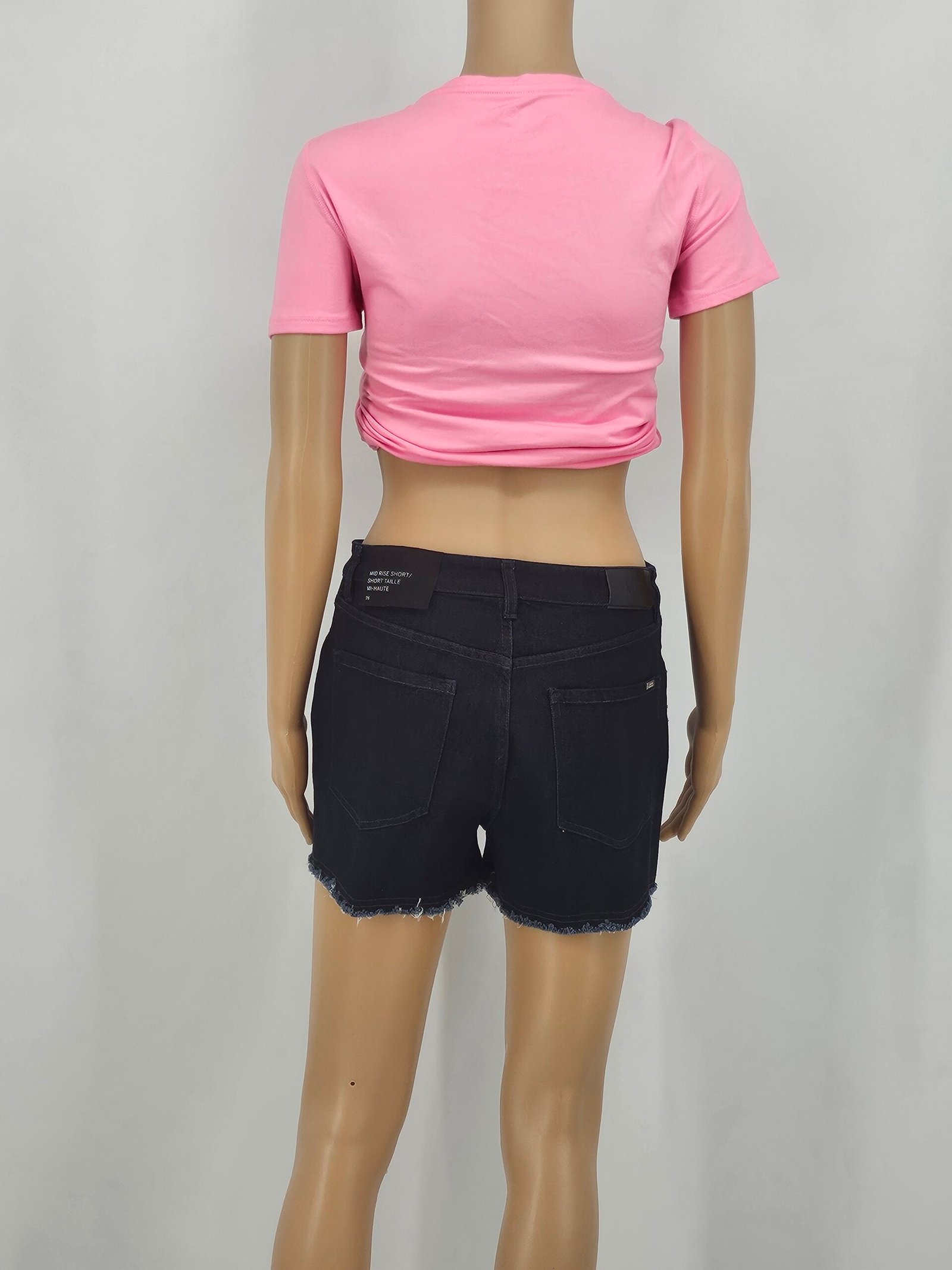Ladies mid rise, cut off denim shorts.