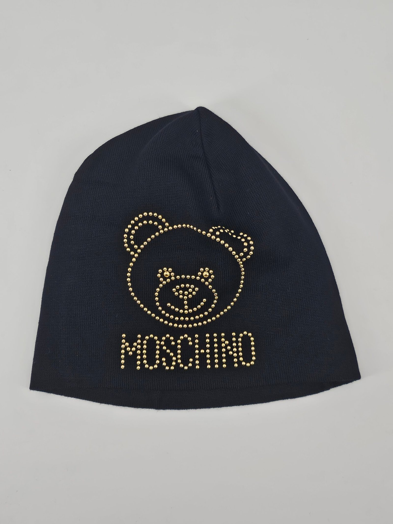 Ladies Moschino studded bear beanie.