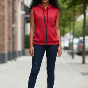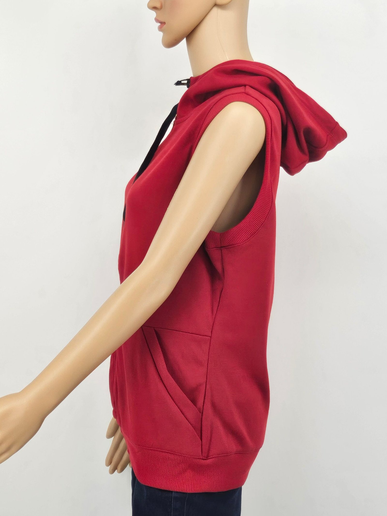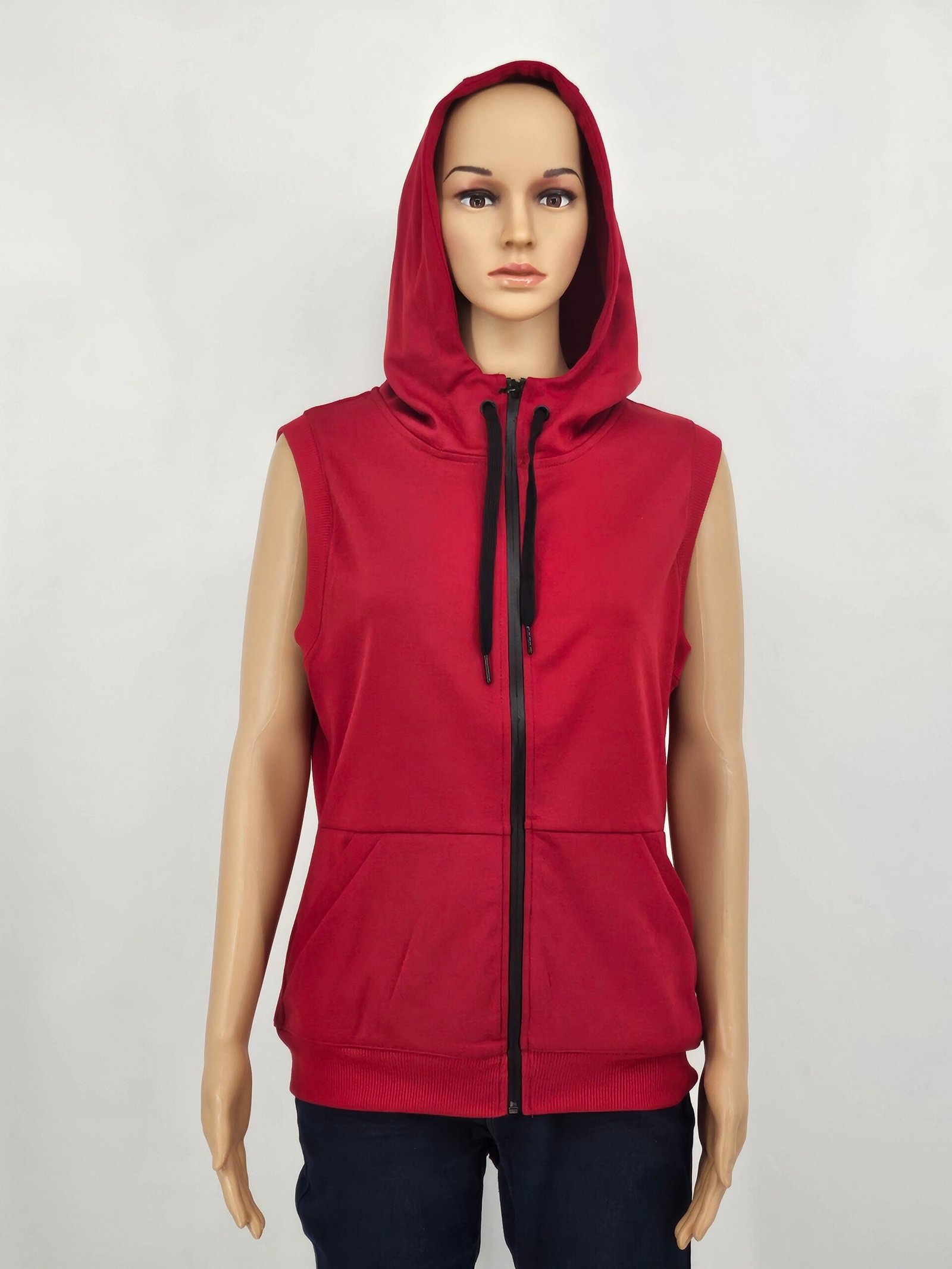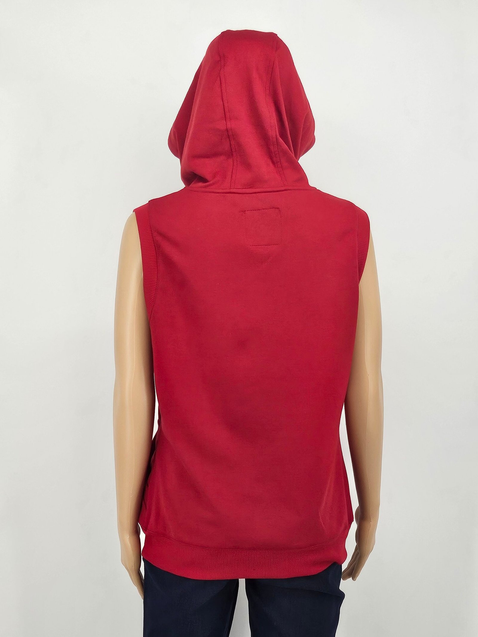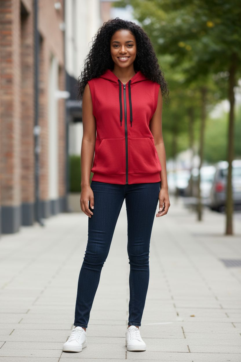 Ladies sleeveless, zip up hoodie.