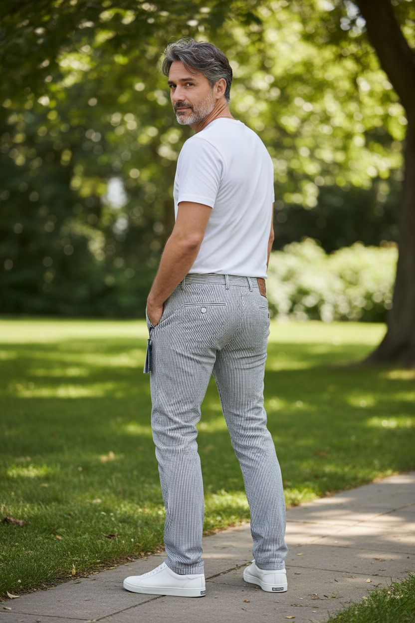 Mens classic fit, striped, Summer pants.