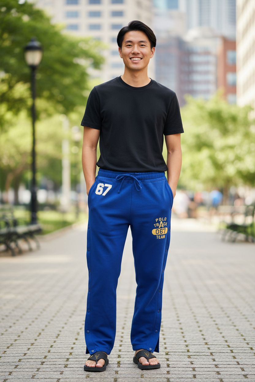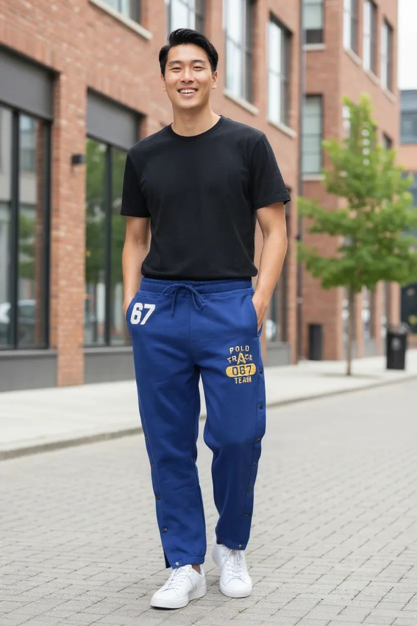 Mens snap on track pants.