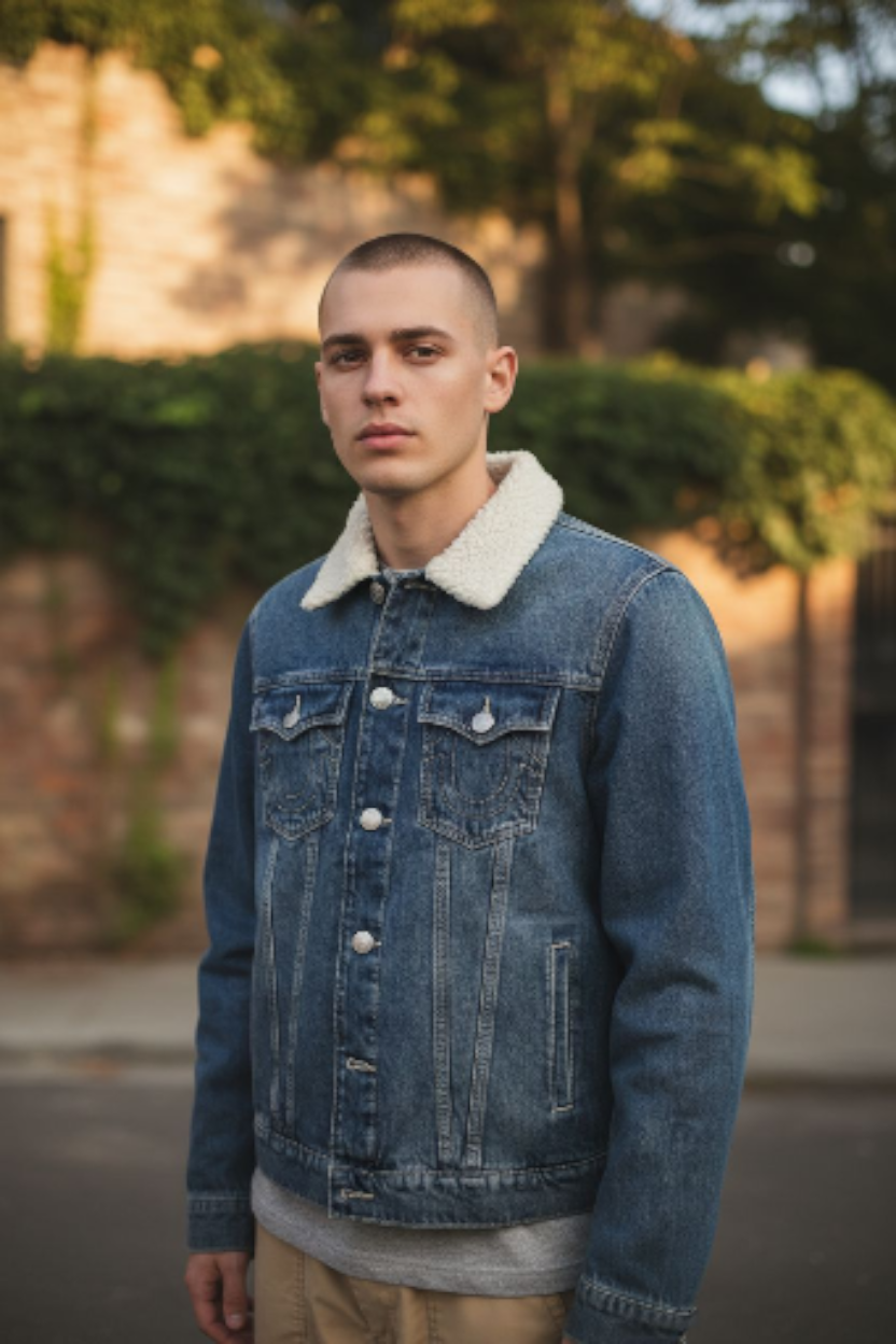 Fleece collar trucker denim jacket